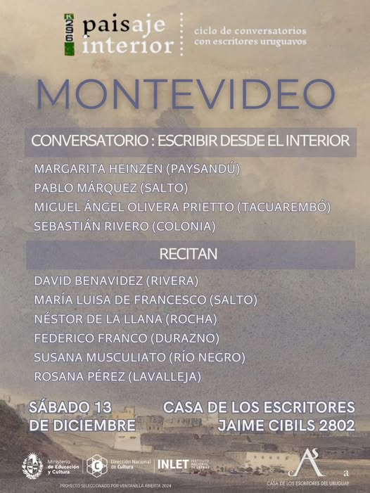 El ciclo Paisaje Interior —organizado por la Casa de los Escritores del Uruguay con apoyo del programa Ventanilla Abierta del Instituto Nacional de Letras (INLET/MEC)— está recorriendo el país con conversatorios y encuentros literarios que buscan fortalecer el intercambio entre escritores uruguayos, especialmente los radicados en el interior, y acercar la literatura a diferentes territorios.