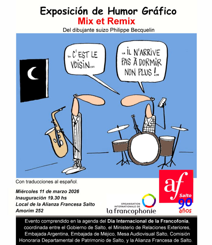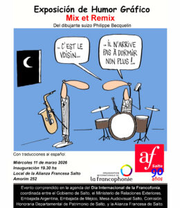La Alianza Francesa de Salto, en el marco de las actividades por el Día Internacional de la Francofonía, presenta una muestra del dibujante de prensa suizo Philippe Becquelin. Con el seudónimo de Mix et Remix tuvo una amplia trayectoria en los medios gráficos periodísticos suizos, de la cual existen varios libros publicados de su obra. Mix et Remix fue reconocido por su humor inteligente, ingenioso, y siempre respetuoso, y sobre todo por su dibujo rápido y minimalista realizado con fibra sobre papel, en la que se ilustran personajes de grandes narices en entornos minimalistas.