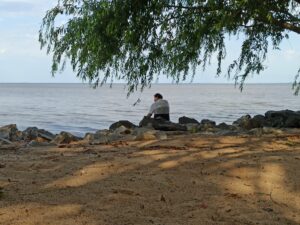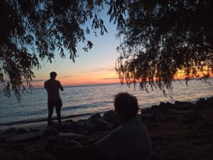 En este viaje de carnaval,, ya la primera noche que llegamos, mi señora quiso encender un fogón en la arena, como los que recordaba cuando era niña e iba al río con su familia. Nuestros hijos, los dos varones y la mujer, ensayaron sus tiros de pesca, alimentaron el fogón, llevaron música, por momento se impregnaron del silencio nocturno, de la bóveda celeste, algunos pájaros de acero que cruzaban, rumbo a Buenos Aires y al Paraguay, o a Brasil, jugábamos a acertar hacia donde irían.