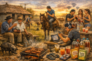 – Es verdad, falta el aire y sobran mosca en este domingo de enero…Yo lo que le quiero decir don Braulio, es que la gurisada ahora anda medio desnorteada, los mocitos ya no saben ni del arado ni la reja, ni tirar un pial, ni sujetarse a un corcovo.