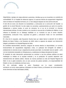 Más allá de los hechos puntuales, el documento advierte sobre problemas estructurales persistentes, falta de insumos básicos, guardias con personal insuficiente, demoras prolongadas en los servicios de urgencia y la utilización de camas en pasillos, prácticas que vulneran cualquier estándar mínimo de calidad, seguridad y dignidad asistencial. A esto se suma una carencia que se ha vuelto emblemática, la ausencia efectiva de un tomógrafo plenamente operativo, lo que obliga a derivaciones, retrasa diagnósticos críticos y profundiza la inequidad territorial frente a otros centros del país.