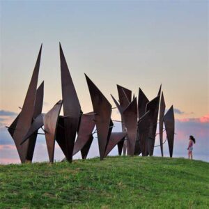 El arte de Santurio es un juego de tensiones entre la gravedad y la levedad, entre la rigidez del metal y la fluidez del gesto. Sus obras no son meros objetos estáticos: están diseñadas para interactuar con su entorno, para transformarse con la luz, la sombra y la mirada del espectador.