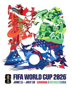 Más que un simple anuncio deportivo, el afiche transmite la idea de un Mundial continental, donde la diversidad cultural de América del Norte se convierte en parte del espectáculo. La pelota y el movimiento del jugador sugieren velocidad y celebración, anticipando un torneo histórico que por primera vez será organizado por tres países.