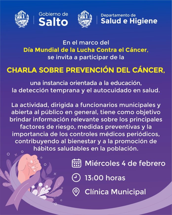 En el marco del Día Mundial de la Lucha Contra el Cáncer, se invita a participar de la Charla sobre Prevención del Cáncer, una instancia orientada a la educación, la detección temprana y el autocuidado en salud.