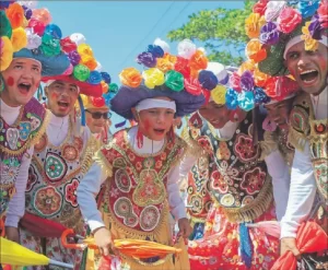 La gente usa los «Mascarados». Son disfraces hechos a mano que mezclan la estética europea antigua con telas y elementos locales. Es un desfile silencioso, misterioso y muy fotográfico. Es como si el tiempo se hubiera detenido hace 100 años.