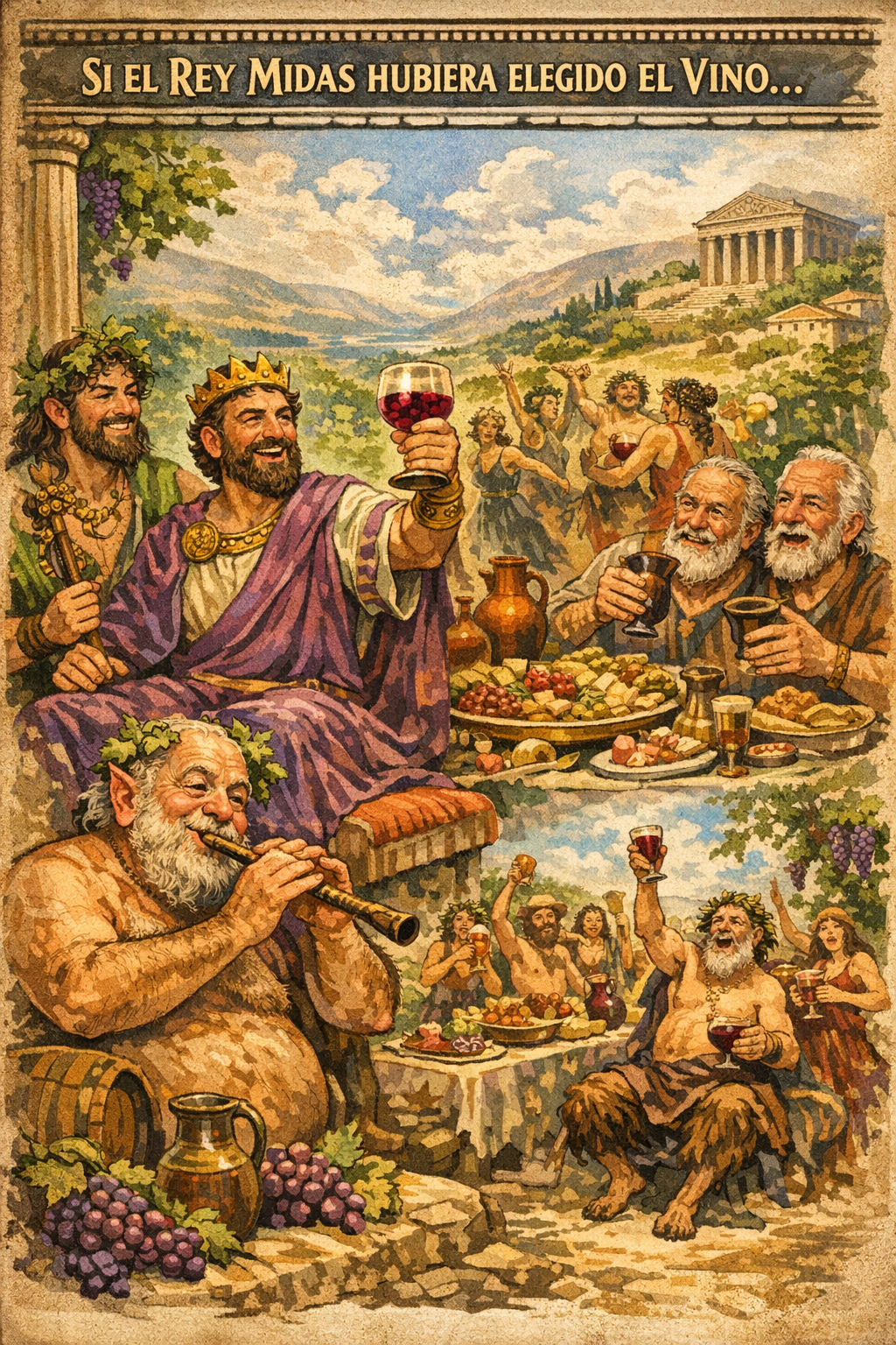 Alontines y Somiro se lamentaban que el Rey Midas hubiera elegido el oro, y no el vino, la de jarras que se hubieran tomado algo si el rey los incluía entre su séquito de mamertos…..